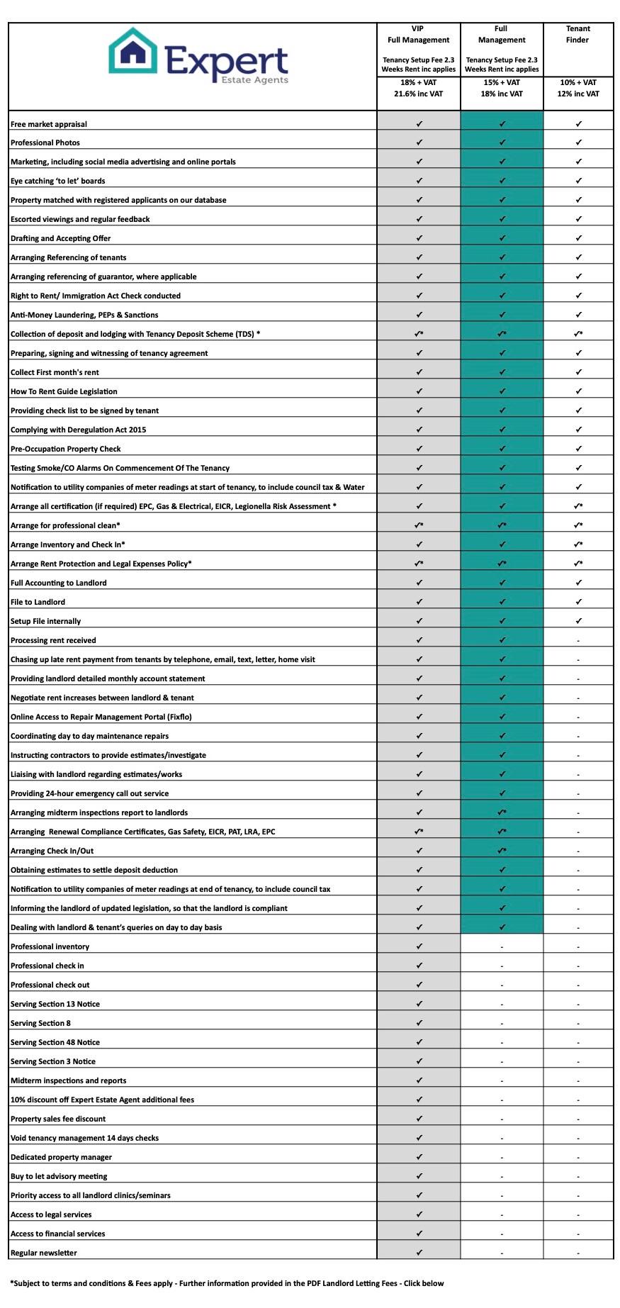 Our VIP Full Management service is a complete property management service that offers a rent guarantee* which covers non-payment of the rent and legal costs. This service includes the cost of renewals, midterm reports, inventory, check in and check out. You can rest assured that your property is being professionally managed, whilst never having to worry about rent arrears or legal fees.